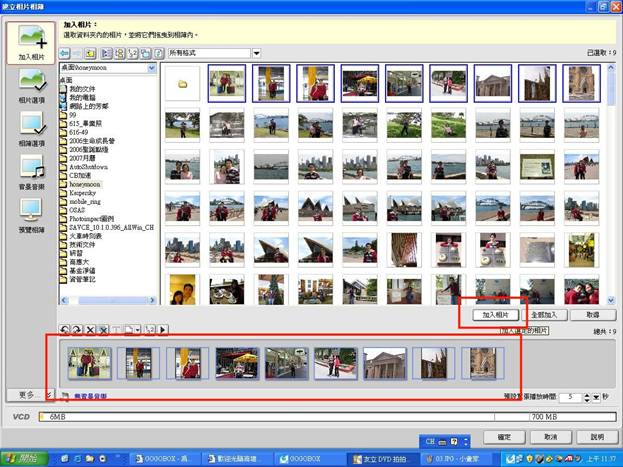 6.將選取的圖片點選【加入相片】,選取的相片會出現在下方預覽視窗