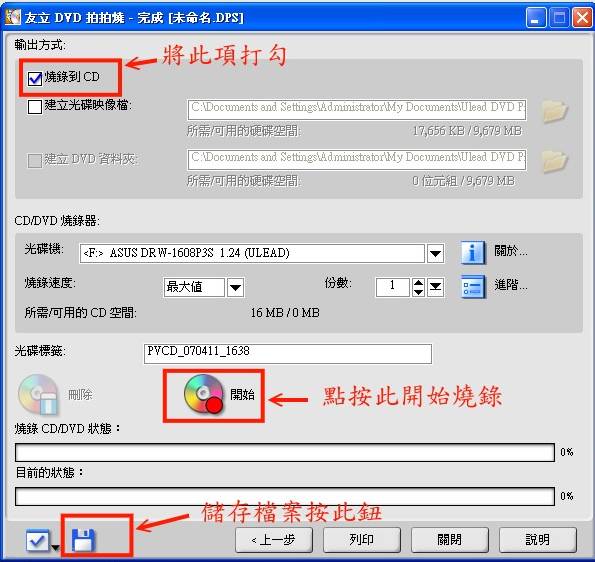 14.燒錄光碟:先將空白光碟片,放進燒錄器內