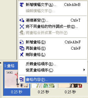 六、畫格速度調整,在畫格上按右鍵修正其延遲時間,如下圖。